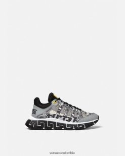hombres zapatillas trigreca con estampado de pitón Versace negro y estampado 2RP40F1543 zapato