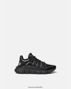 hombres zapatillas speedtrack de alta costura con logo Versace oro negro 2RP40F2460 zapato