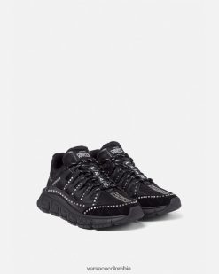 hombres zapatillas speedtrack de alta costura con logo Versace oro negro 2RP40F2460 zapato