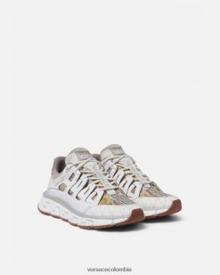 hombres zapatillas trail trek de alta costura con logo Versace oro y blanco 2RP40F2465 zapato