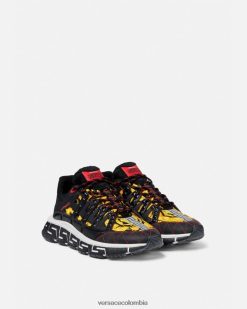 hombres zapatillas trail trek de alta costura con logo Versace oro negro 2RP40F2466 zapato