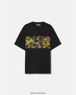 hombres camiseta de alta costura con logo Versace oro negro 2RP40F2387 ropa