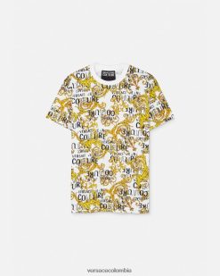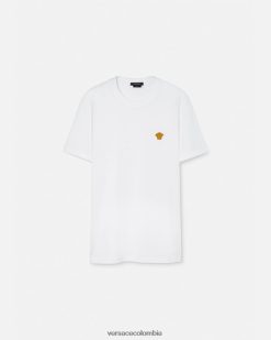 hombres camiseta de alta costura con logo Versace oro y blanco 2RP40F2386 ropa