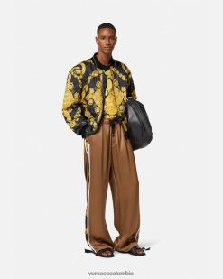 hombres camiseta de alta costura con logo Versace oro negro 2RP40F2388 ropa