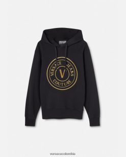 hombres sudadera con capucha y emblema en V Versace oro negro 2RP40F2364 ropa