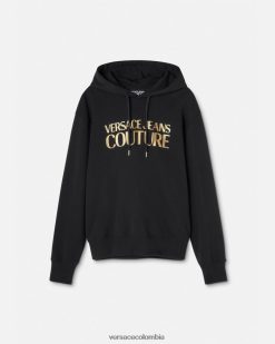 hombres sudadera con capucha y logo Versace oro negro 2RP40F2362 ropa