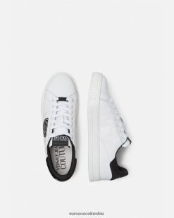 hombres zapatillas con logo y emblema en V Court 88 Versace blanco negro 2RP40F2452 zapato