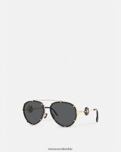mujer gafas de sol con clip estilo piloto icono vintage Versace oro negro 2RP40F676 accesorios