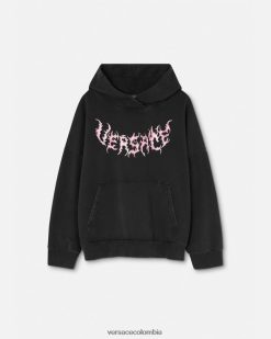 mujer sudadera con capucha extragrande y desgastada Versace negro 2RP40F142 ropa