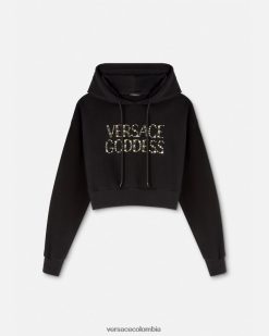 mujer sudadera corta con capucha y tachuelas de diosa Versace negro 2RP40F145 ropa
