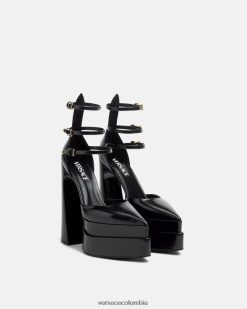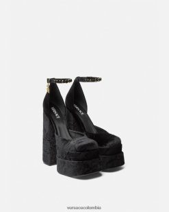 mujer zapatos de tacón con plataforma de terciopelo medusa aevitas Versace negro 2RP40F428 zapato