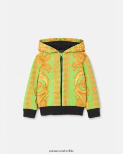 niños sudadera con capucha y cremallera para bebé barocco 660 Versace oro y verde 2RP40F1892 ropa