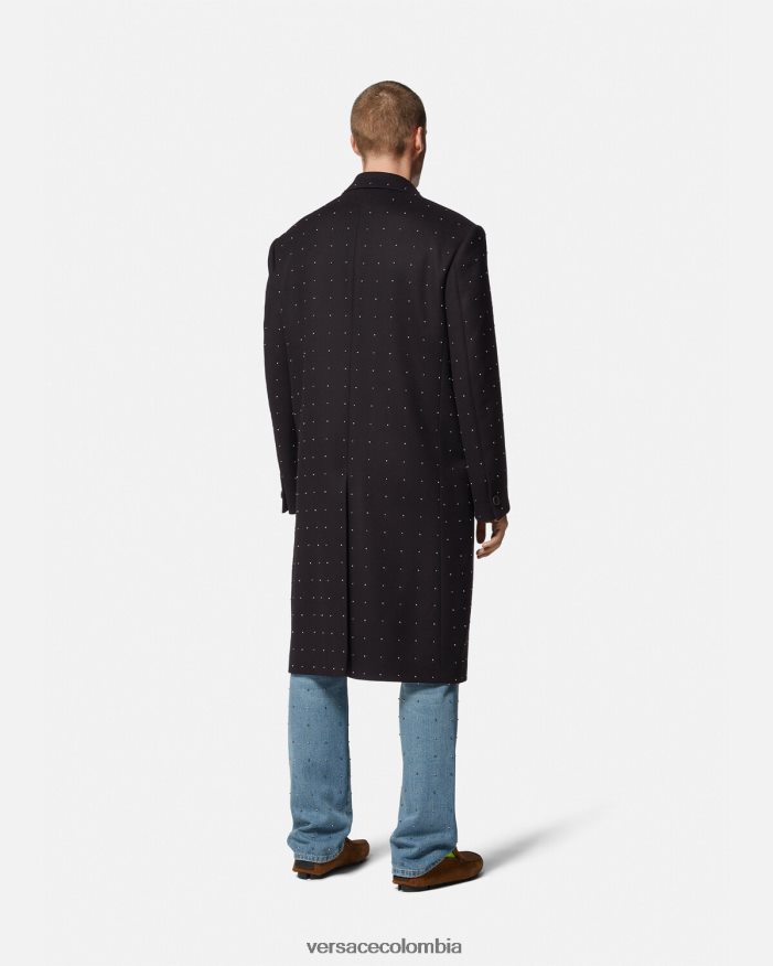 Confeccionado en lana, este abrigo largo está realzado por una rejilla de tachuelas táctiles. El diseño de botonadura sencilla tiene solapa de muesca y bolsillos ribeteados.