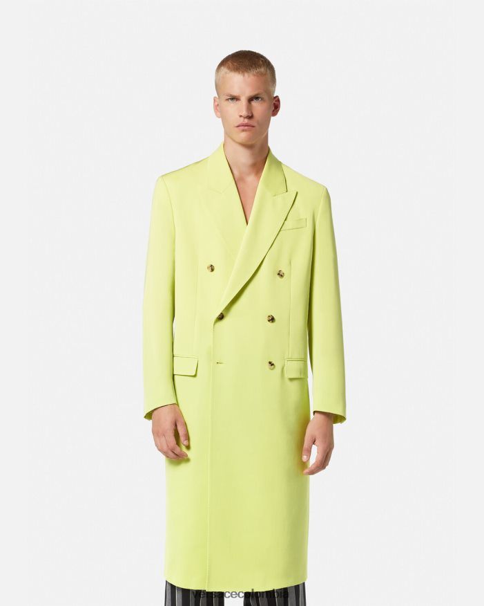 Confeccionado en una mezcla de sarga de algodón, este abrigo de doble botonadura está completamente forrado y presenta solapa de pico y bolsillos delanteros con solapa.