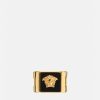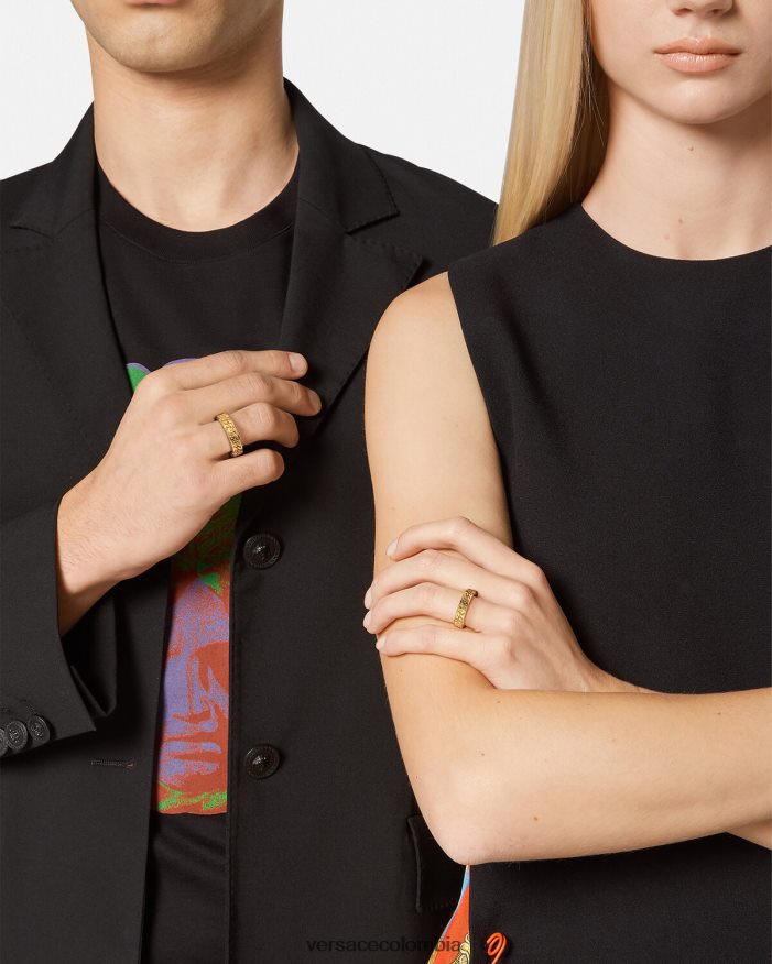 Anillo en tono dorado adornado con una sutil medusa rodeada por un clásico patrón de eslabones de cadena. Todos los productos de joyería de Versace no contienen plomo ni níquel. Todos los materiales son hipoalergénicos.