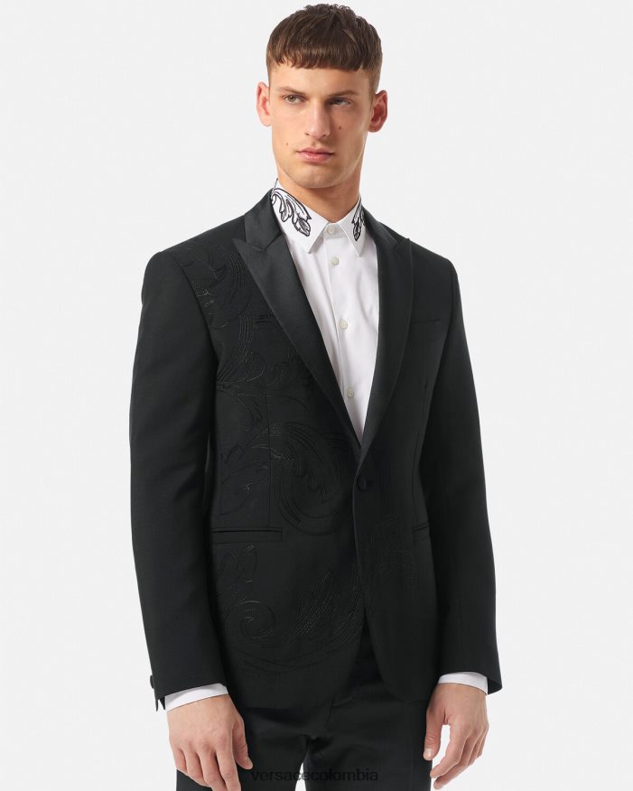 hombres blazer formal con bordado barroco Versace negro 2RP40F1262 ropa