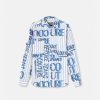 Esta camisa de algodón de manga larga presenta un estampado de bocetos de alta costura en contraste y un logotipo “número de pieza” en el pecho.