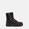 Botines de piel con cierre de cremallera lateral, logo estampado y un cómodo acolchado de malla en el mostrador.