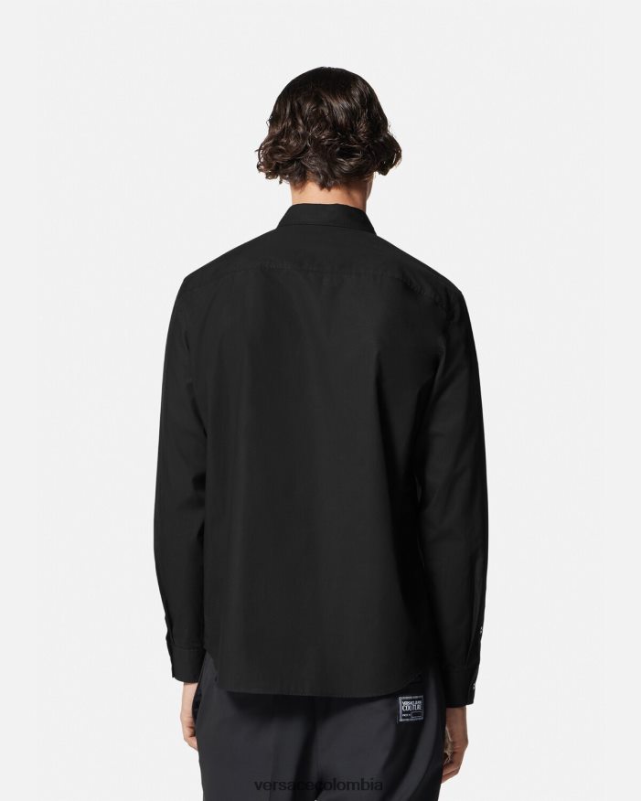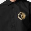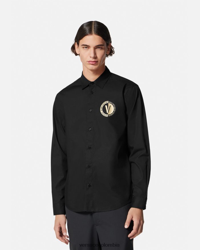 hombres camisa con emblema en V Versace oro negro 2RP40F2402 ropa