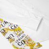 Esta camisa de algodón de manga corta presenta un logotipo de alta costura estampado en contraste en los laterales en sarga fluida.