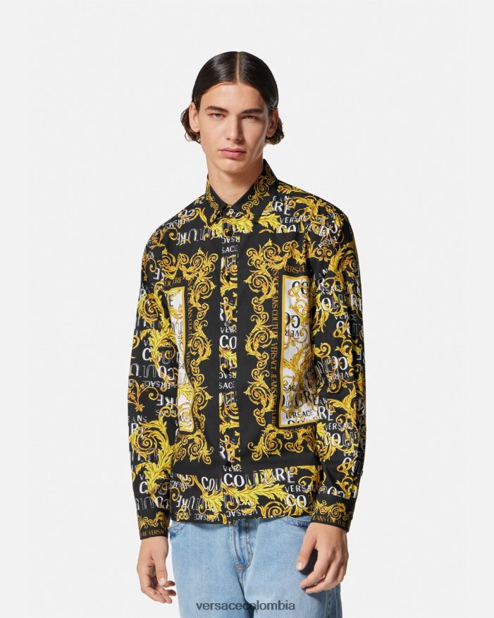 Esta camisa de manga larga de algodón presenta un estampado de alta costura con el logotipo colocado.