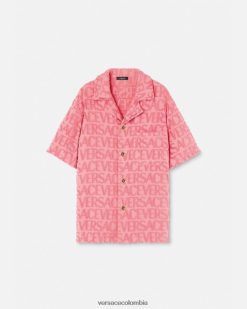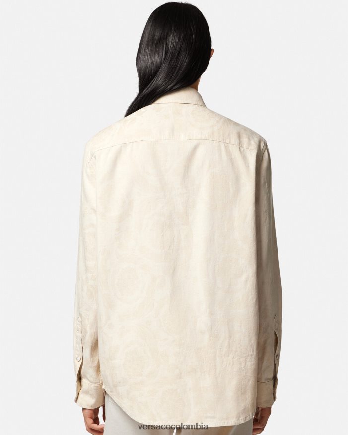 Esta camisa de mezclilla ligera de cambray presenta un patrón de jacquard de silueta barroca y botones a presión de nácar de medusa.