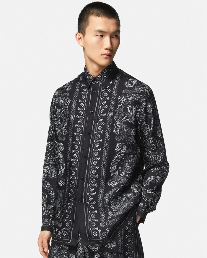 hombres camisa de seda con silueta barroca Versace imprimir 2RP40F1316 ropa