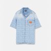 una camisa de seda de manga corta con lunares y motivos integrales de mariposas y mariquitas con cuello con muescas.