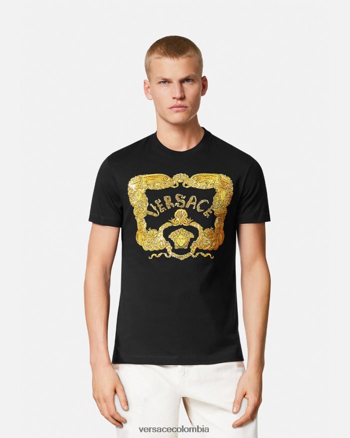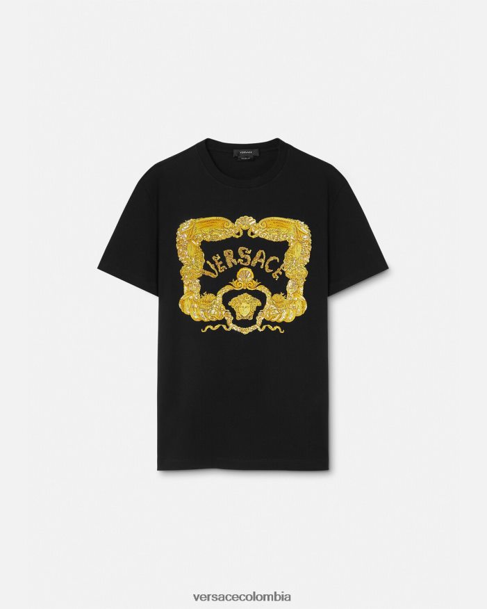 hombres camiseta con bordado de conchas barrocas Versace negro 2RP40F1363 ropa