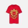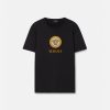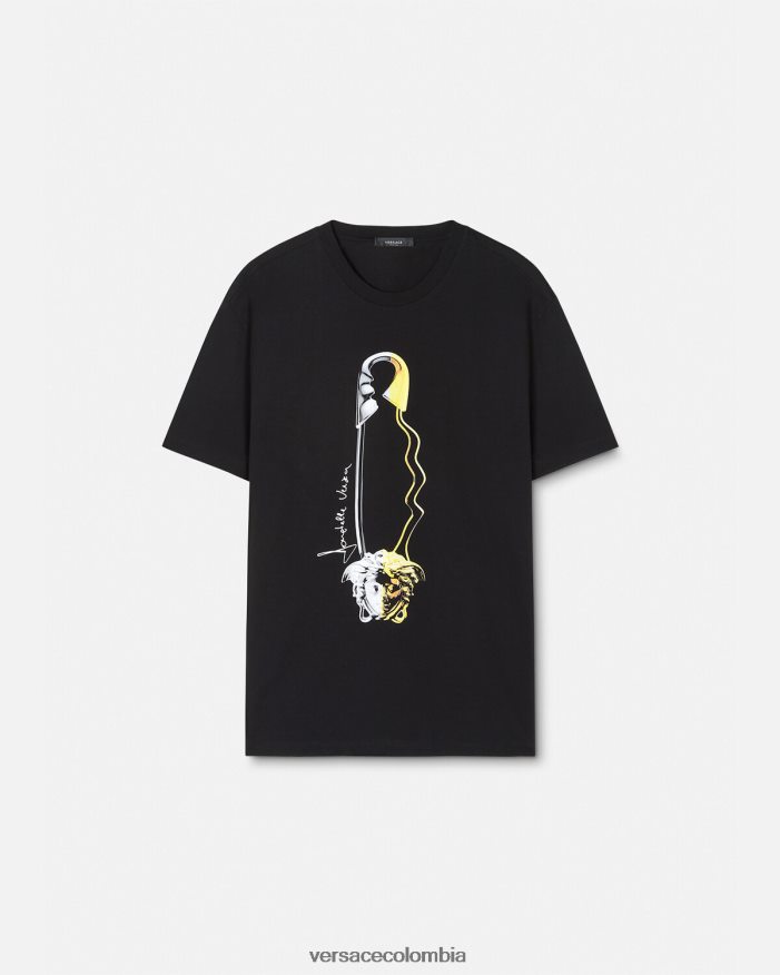 Confeccionada en algodón con un corte estándar, esta camiseta gráfica de manga corta presenta un motivo de imperdible reinventado. El estilo de cuello redondo está estampado con la firma de Donatella Versace.