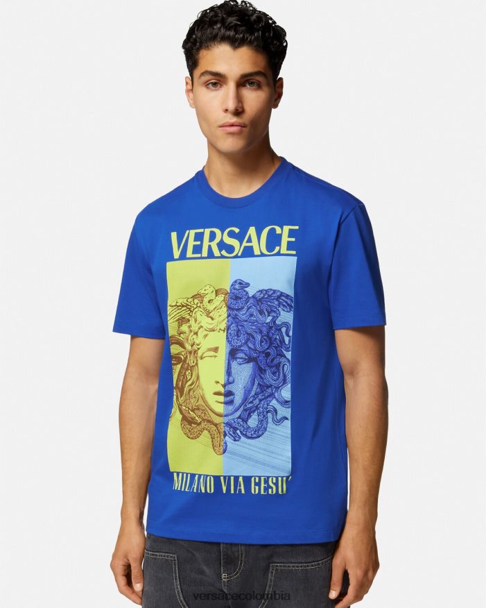 Confeccionada en algodón con un corte estándar, esta camiseta de manga corta presenta un estampado gráfico que reinventa esculturas clásicas y motivos mitológicos con significados de Versace.