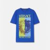 hombres camiseta con logo barroco bordado Versace gris 2RP40F1410 ropa