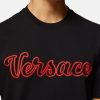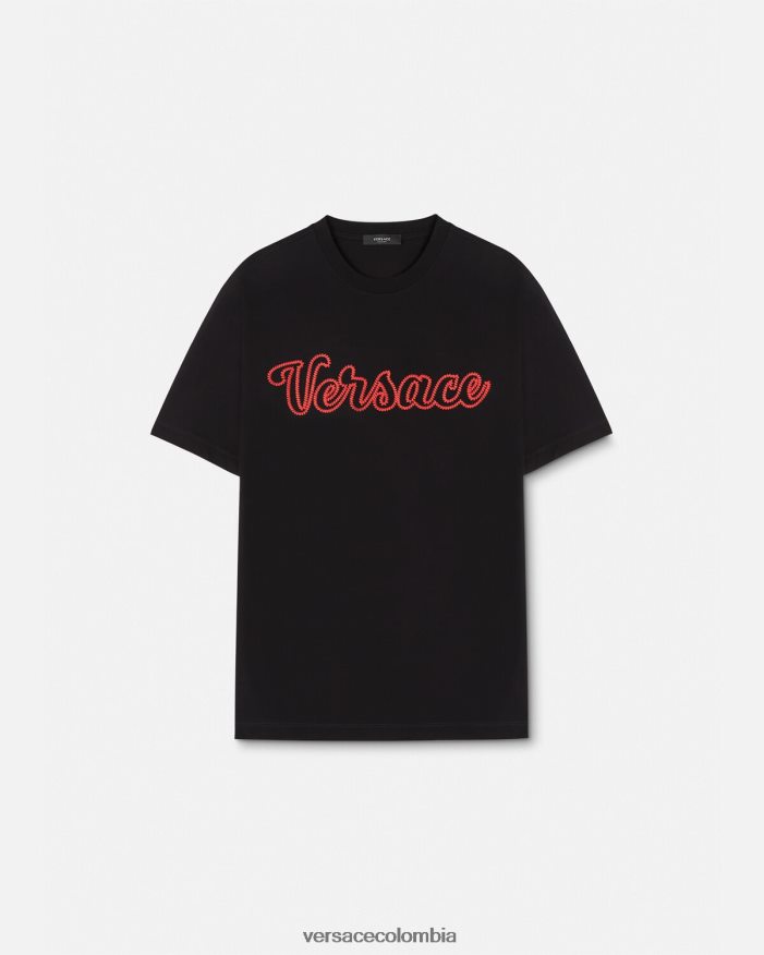 hombres camiseta con logo universitario bordado Versace negro 2RP40F1404 ropa