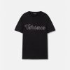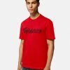hombres camiseta con logo universitario bordado Versace rojo 2RP40F1405 ropa