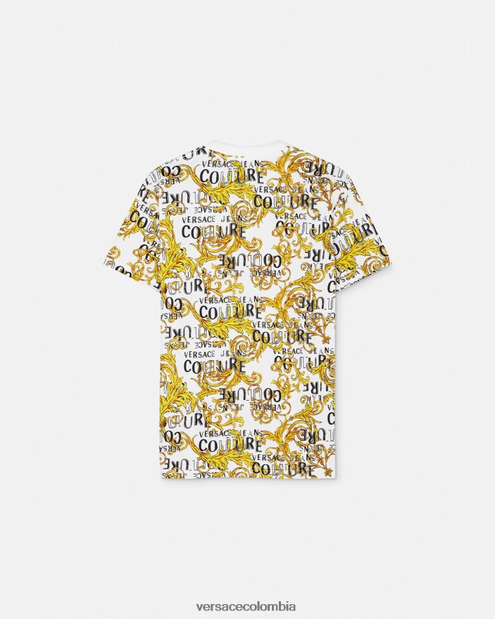 Esta camiseta de manga corta de algodón de corte entallado presenta un logotipo de alta costura estampado por toda la prenda.