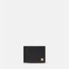 Este tarjetero plegable, confeccionado en piel de becerro flexible, presenta un adorno de Medusa Biggie. la billetera tiene seis ranuras para tarjetas internas y un clip para billetes en tono dorado.