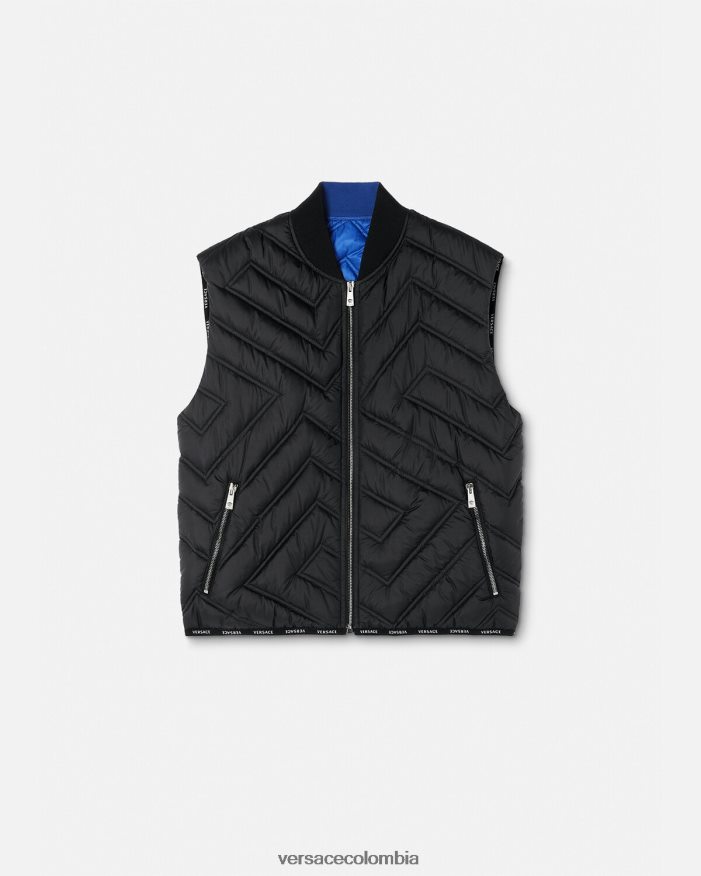 Este chaleco acolchado, de diseño liviano, presenta una capa acolchada de La Greca con ribetes con logo. Este estilo sin mangas está acentuado por cremalleras metálicas de Medusa y revela un forro vibrante.
