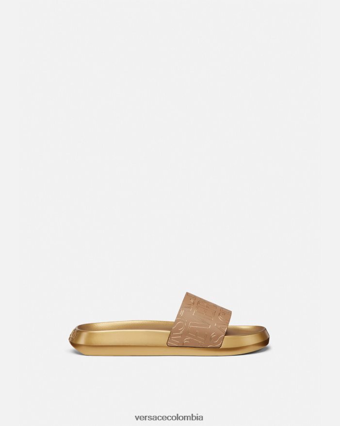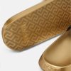 Estas sandalias cuentan con parte superior estampada de Versace y suelas de goma moldeadas.