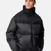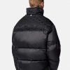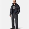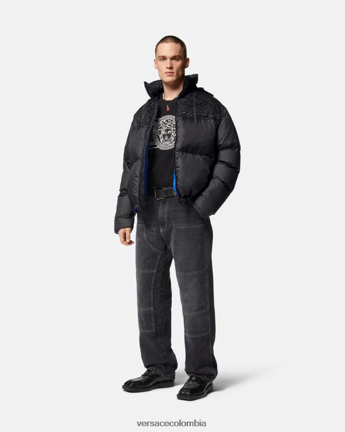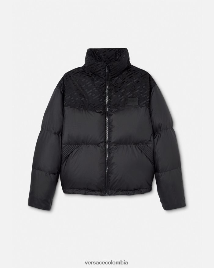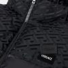 Esta chaqueta acolchada, de estilo acolchado, presenta un diseño de paneles con un estampado de La Greca tonal. El estilo de cuello alto se detalla con una capucha ligera y tiene un parche con el logo extraíble en el pecho.