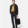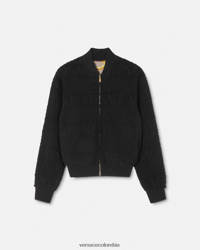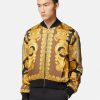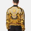 En una mezcla de lana, esta chaqueta bomber reversible presenta un logotipo de Versace con textura de rizo y el motivo de La Greca en un lado, y el estampado Barocco 660 en el reverso. ribetes de canalé y bolsillos laterales rematan la prenda.