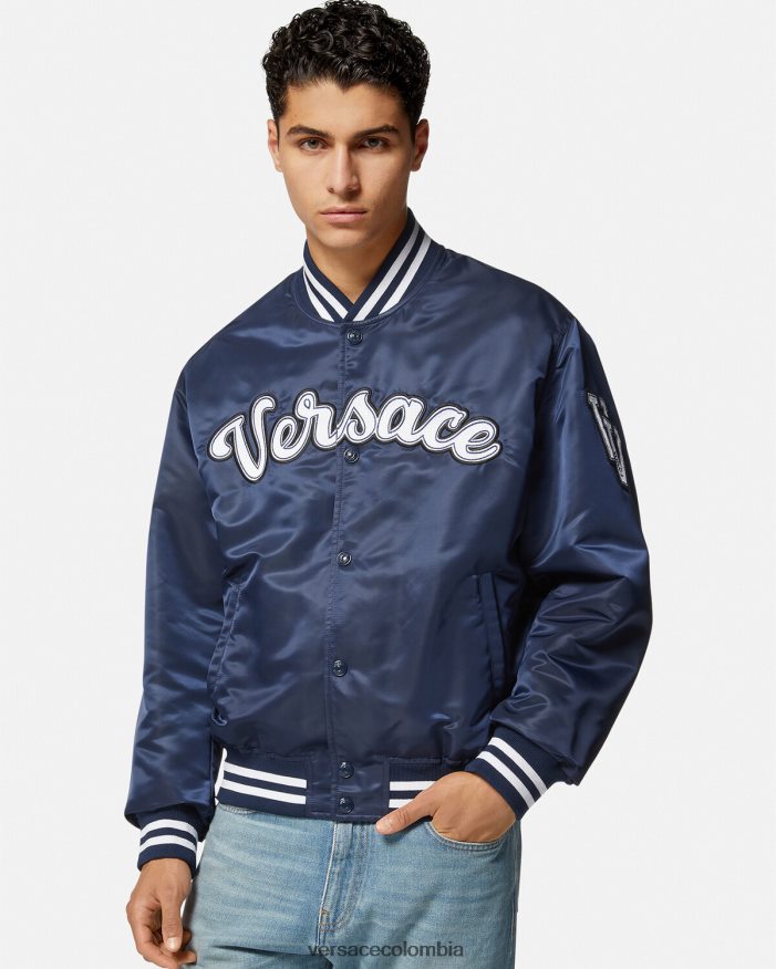 hombres chaqueta bomber universitaria de nailon Versace azul 2RP40F1230 ropa