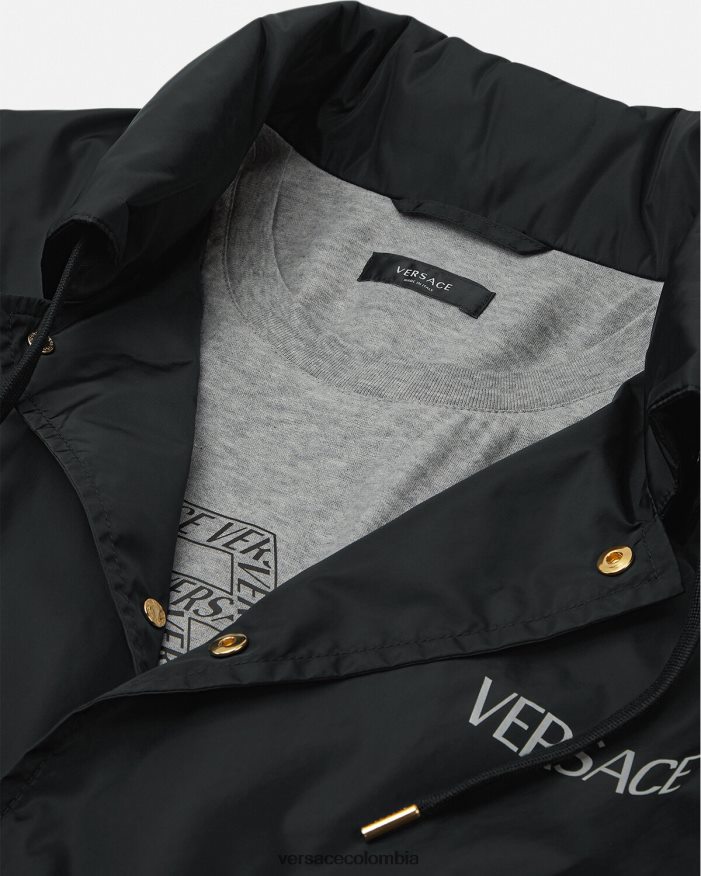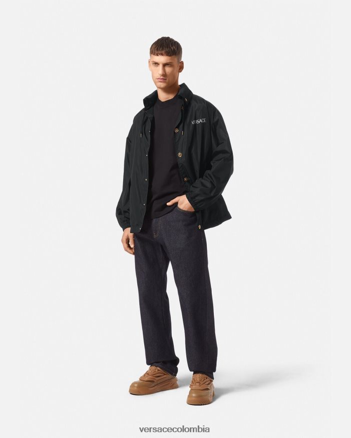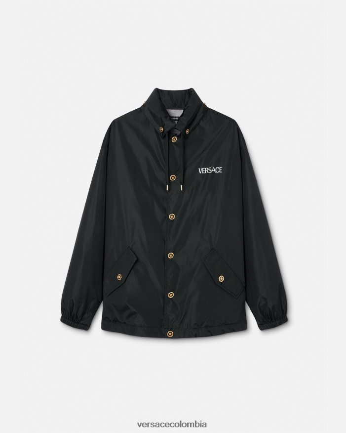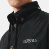 Esta chaqueta, de diseño ligero, presenta botones tributo a Medusa y dos bolsillos grandes, completos con el logo de Versace en el pecho.