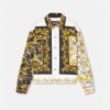 Esta chaqueta tipo blusón es reversible y presenta un estampado de alta costura con un logotipo pictórico y puños elásticos.