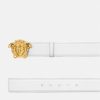 Este cinturón, confeccionado en Italia con piel flexible, está adornado con una hebilla de Medusa.
