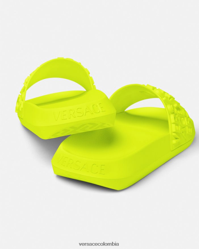 Estas sandalias de goma presentan un patrón de Versace en la parte superior con un efecto tridimensional.