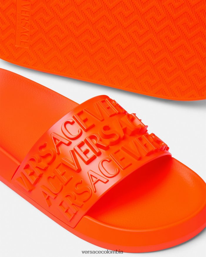 Estas sandalias de goma presentan un patrón de Versace en la parte superior con un efecto tridimensional.