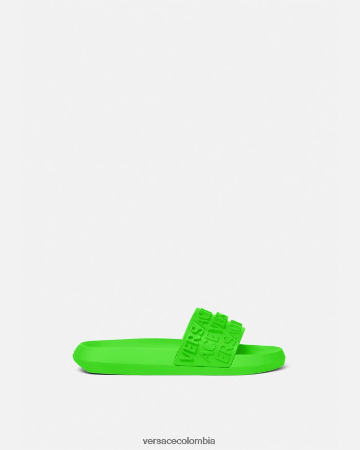 Estas sandalias de goma presentan un patrón de Versace en la parte superior con un efecto tridimensional.