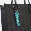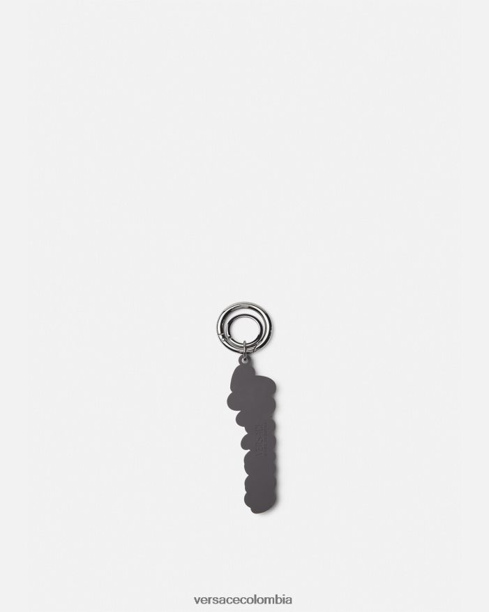Un accesorio de silicona para complementar bolsos, llaves y más de Versace. Este llavero tiene la forma del logotipo característico de Versace en estilo universitario.