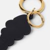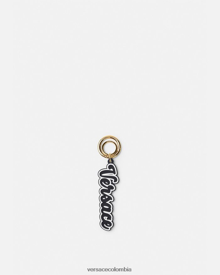 Un accesorio de silicona para complementar bolsos, llaves y más de Versace. Este llavero tiene la forma del logotipo característico de Versace en estilo universitario.