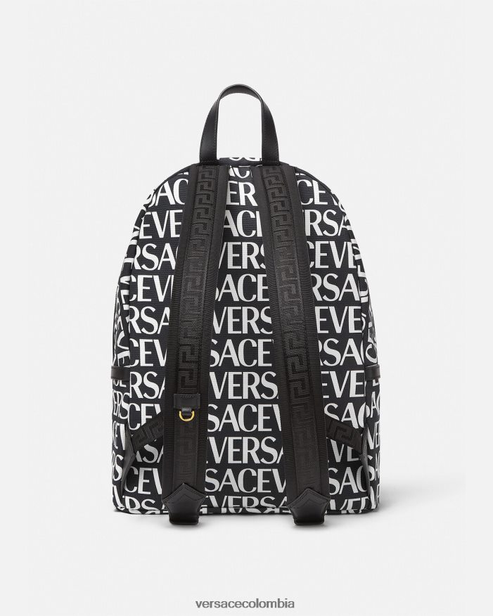 Esta mochila, confeccionada con lona revestida, presenta el logotipo de Versace estampado por toda la prenda. El estilo práctico tiene un gran bolsillo frontal para un fácil acceso, mientras que el espacioso interior tiene un bolsillo con cremallera y cremallera. Un patrón de greca de jacquard aparece en las correas de los hombros.